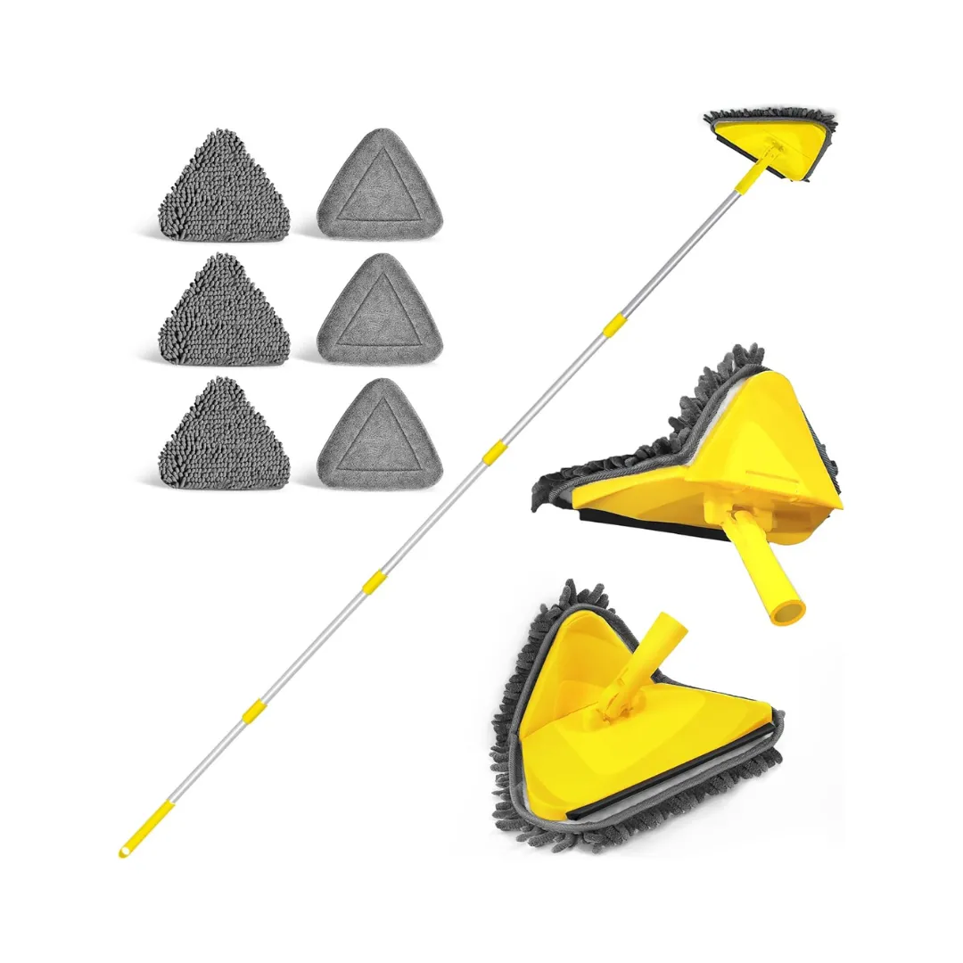 Il mocio triangolare con manico lungo consente di pulire i punti più difficili della casa, quindi anche di togliere la polvere e, con l’aggiunta di pochissima acqua da usare solo sulle vernici lavabili, consente di detergere anche i muri. Prezzo: 23,81 euro su amazon.it