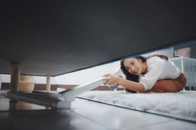 Lo spazio sotto e dietro letto e divano è solitamente una zona poco visibile e spesso difficili da raggiungere, che tende a essere esclusa dalla pulizia ordinaria, diventando nel tempo veri e propri ricettacoli di sporco, polvere e capelli.