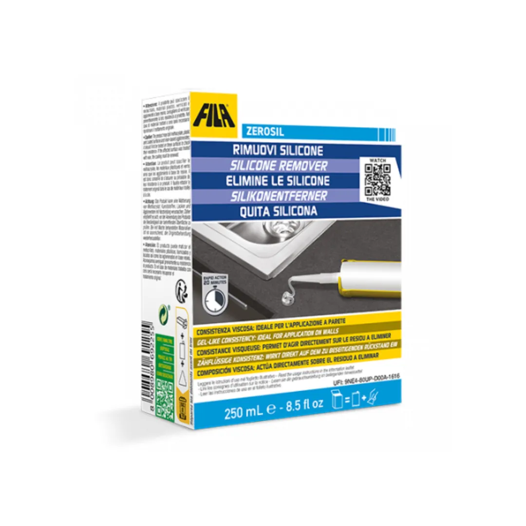 Fila Solutions propone un prodotto professionale per rimuovere il silicone da molteplici superfici, come gres porcellanato, ceramica, marmo e vetro. Nella scatola, oltre al prodotto, c’è anche una pratica spatola. https://www.filasolutions.com/