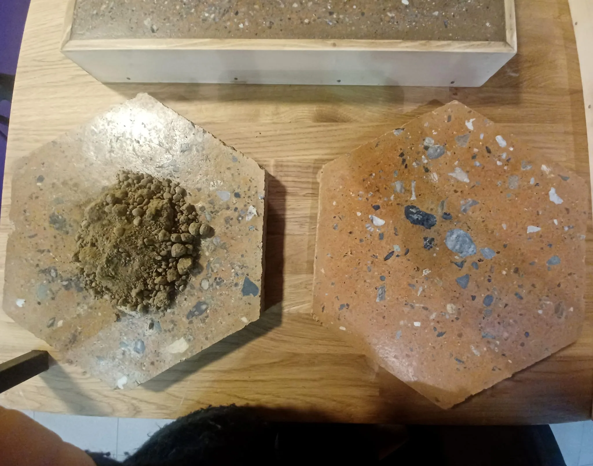 La startup Terra Tiles nasce dal lavoro di un team di tre ingegneri che hanno avuto l’idea di trasformare scarti edili – in particolare la terra di scavo dei cantieri – in materia prima per realizzare piastrelle artigianali. Un riciclo che fa bene all’ambiente, considerato che il 35% del totale dei rifiuti proviene dal settore edile. La tecnica è antichissima: si parte quindi dalla terra cruda naturale che viene mescolata con frammenti minerali, sempre di recupero. Il prodotto, modellabile in diversi formati e spessori, non richiede leganti chimici, né cottura; il processo, simile a quello per la terra battuta, consiste invece nella pressatura, levigatura e ceratura superficiale con cera d’api. Le piastrelle così ottenute sono riciclabili al 100%. L’estetica è molto particolare, richiama i manufatti del passato.