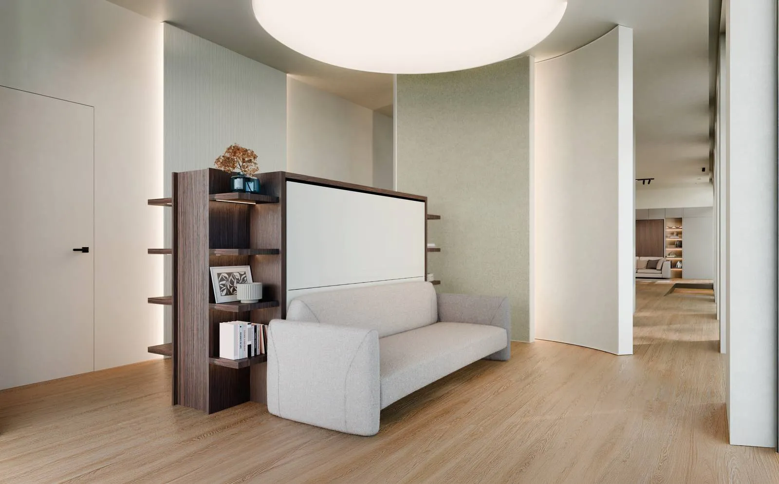 Letti a scomparsa, divani trasformabili, pareti attrezzate e moduli ibridi convivono in composizioni coerenti, pensate per rispondere alle esigenze di un abitare sempre più flessibile.
