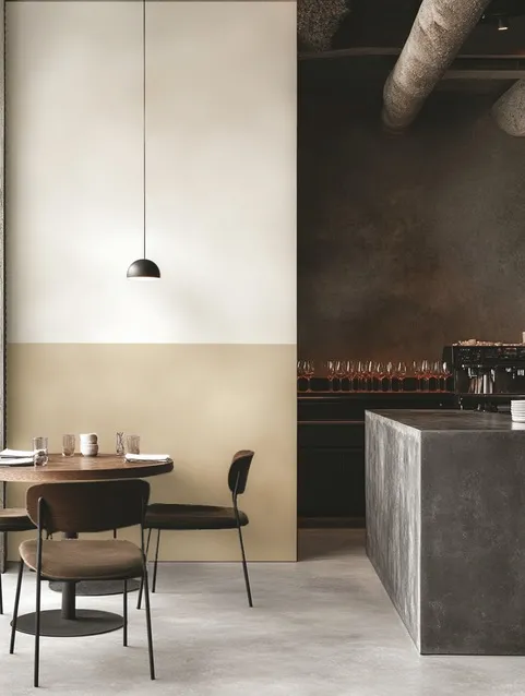 Tactile Brutalism esplora l’equilibrio tra forza strutturale e sensibilità materica, valorizzando volumi pieni e superfici solide attraverso un approccio sensoriale che non perde di vista l’accoglienza. Colori neutri profondi e raffinati grigi terrosi sono le tonalità principali, che conferiscono agli ambienti un carattere calmo e scultoreo.