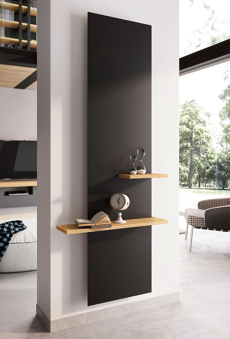 Design minimale per Frame della linea NeoDesign di Cordivari Design, a piastra sottile in acciaio al carbonio verniciato in vari colori. Verticale misura da L 35,2 x H 102,2 cm prezzo da 370 euro. Prezzo coppia di mensole in legno di rovere della serie Lynea da 355 euro. http://www.cordivaridesign.it