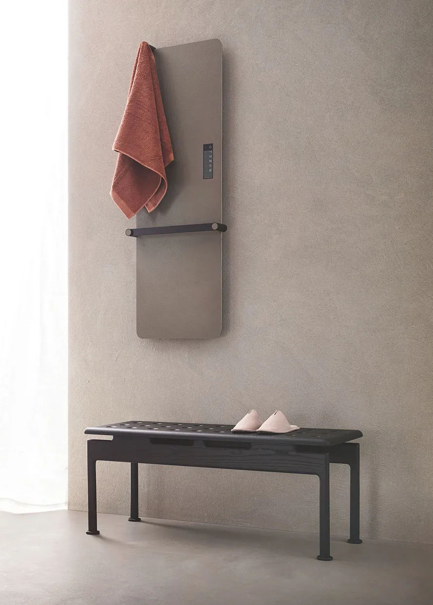 Kinethermo di Kinedo è elettrico, con potenza regolabile su 3 livelli con tastiera touch e telecomando. È disponibile nelle finiture Ardesia Matt, Urban Grip, Natural Stone Matt e Smooth. Si può aggiungere la barra portasciugamani. Misura L 50 x H 100 cm o L 60 x H 122 cm. Prezzo da 1.260 euro + Iva. http://www.kinedo.it