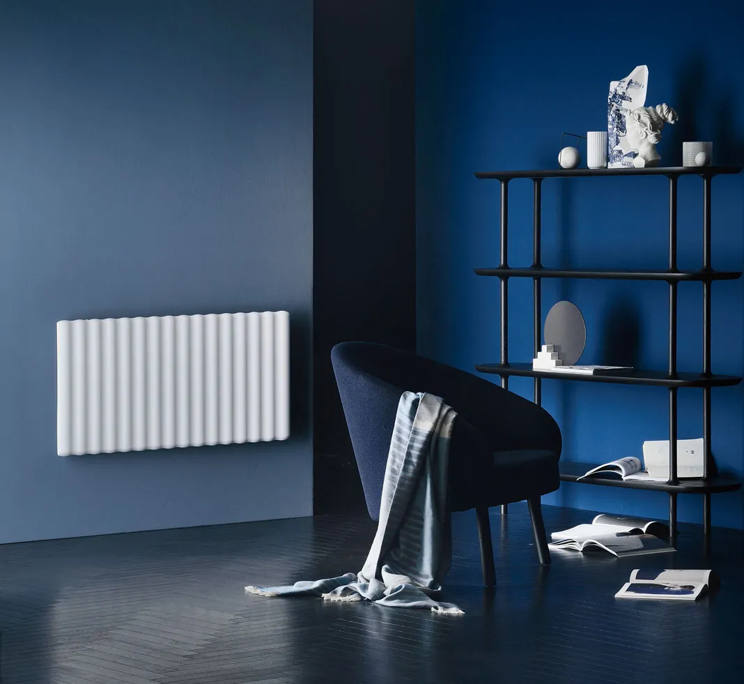 Stripe di Arblu reinterpreta i radiatori tubolari con la superficie ondulata. È in polvere di marmo Livingstone®, in oltre 40 colori, orizzontale o verticale. Disponibile ad acqua, elettrico e ibrido, ha display per impostarlo e programmarlo. Ad acqua, nella misura L 86 x H 55 cm, prezzo da 1.075 euro + Iva. http://www.arblu.it