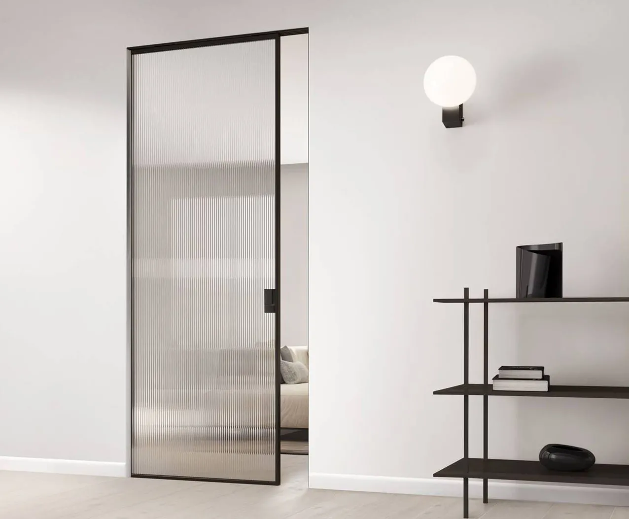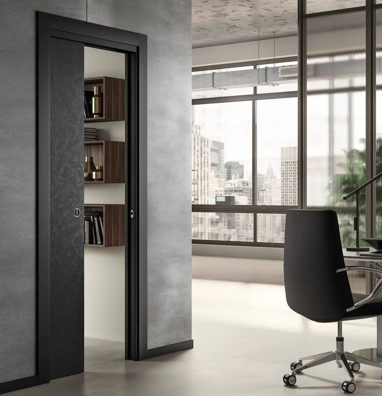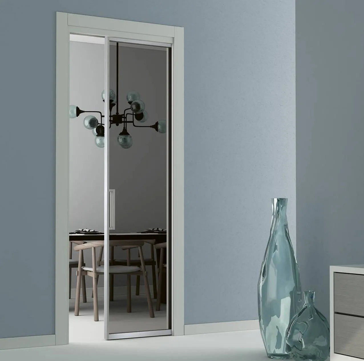 Praticamente a zero ingombro, le porte scorrevoli interno muro scompaiono all’interno della parete quando vengono aperte.
