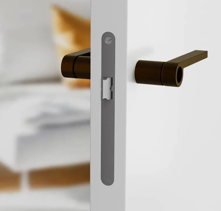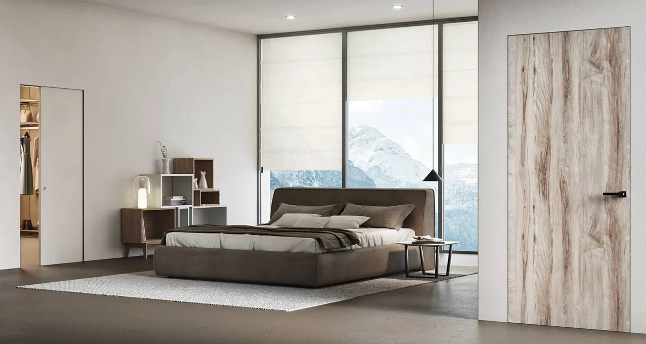 I modelli esterno muro annullano l’ingombro di apertura del classico battente; le interno muro poi lasciano anche libere le pareti per l’appoggio dei mobili.