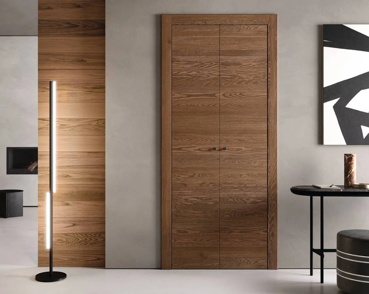 Dove gli ambienti e i passaggi sono stretti al punto da non consentire un battente e la parete non è abbastanza lunga per contenere il controtelaio di una a scomparsa (o si desidera contenere la spesa e velocizzare i tempi della posa), la porta a libro è un’ottima soluzione che coniuga performance ed estetica.