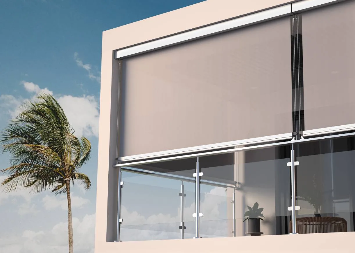 Disponibile in versione filtrante o oscurante, con guide zip in alluminio o cavi in acciaio, si integra con discrezione in ogni contesto architettonico.