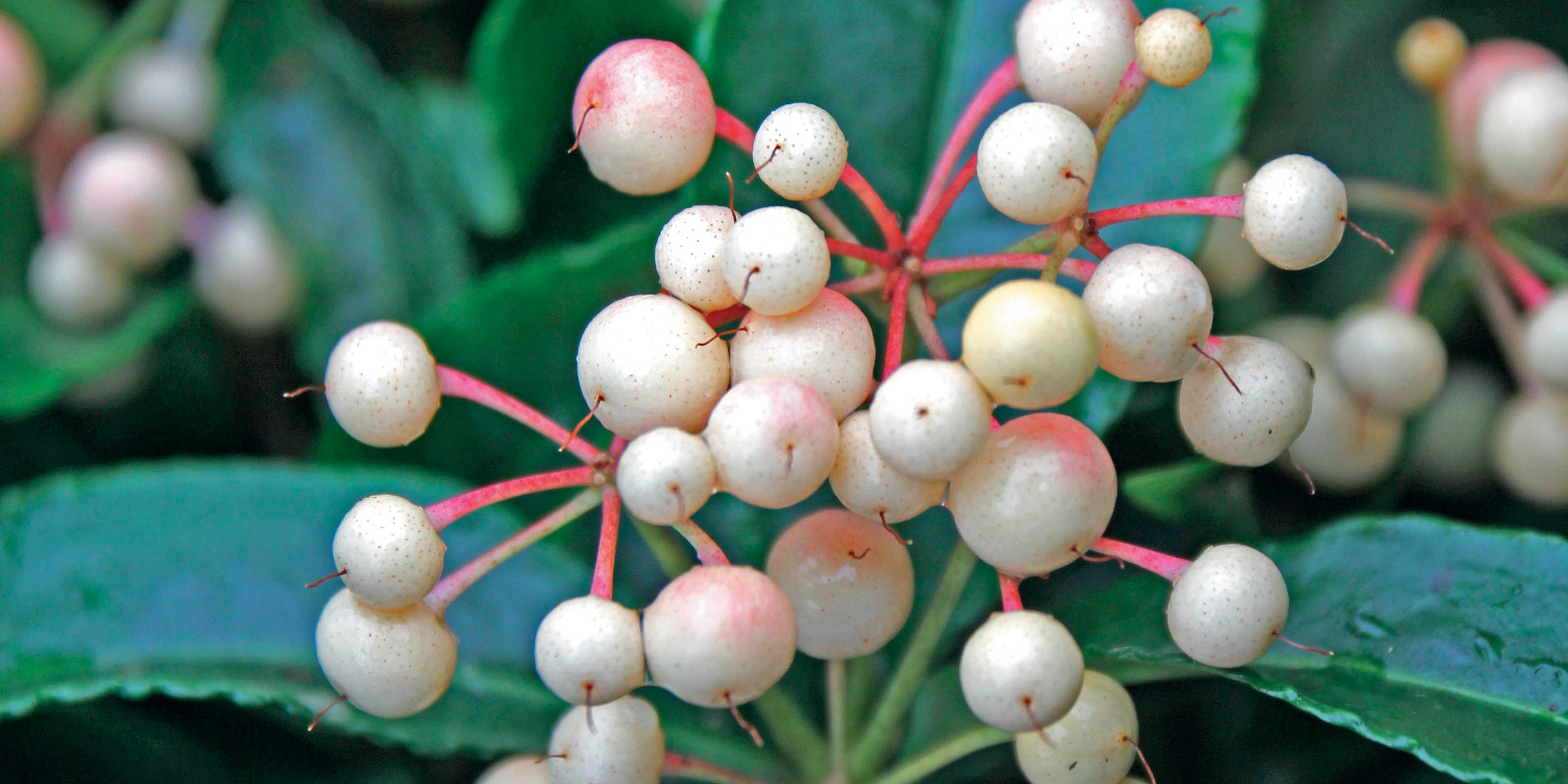 Recidere il ramo di Muehlenbeckia in tre parti lunghe circa 20-25 cm e inserire le estremità di ognuna, privata delle foglie, in due punti diversi e opposti della composizione. Si creerà un piccolo gioco di archi che sovrastano fiori e bacche senza appesantire, ma anzi ingentilendo il risultato.